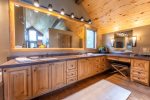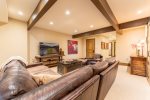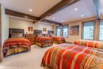 Entering Anthracite Lodge you immediately notice the warm colors and luxurious furnishings, which will wrap you in comfort for your Crested Butte vacation. The recent remodel has highlighted the home's entertaining capabilities and luxury qualities. The first floor of the home contains a guest junior suite with King bed and en-suite bath. There is a large laundry room in the hallway on the way to the kids wing. The kids bedroom is designed to give the kids their own space while the parents unwind upstairs. There are 5 twin beds in the large bedroom accessed by custom sliding barn doors. Outside the bedroom is the kids media room with comfy furnishings and large flat panel TV for movie night. There is also an en-suite bath with dual vanities and shower.
