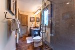Upstairs you will find the private master retreat with King bed, vaulted ceilings, and en-suite bath with steam shower and jetted tub! Slide the custom doors back to reveal the iron railing balcony overlooking the great room and you truly get a sense of being on top of the world! Whatever season, your family can't help but make memories in the luxurious Anthracite Lodge!