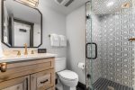 Kick your shoes off in the mud room with custom cabinetry and built in bench to begin your Crested Butte vacation. You will immediately notice that this house has style in spades and you may never want to leave! With sumptuous furnishings and jaw dropping finishes, it is one of a kind. On the first floor you will find a large living room with comfy sectional and access to the outside deck and landscaped yard right on Coal Creek. There are two guest bedrooms on this level. One has has a Queen bed with an en-suite full bath that has a shower/tub combo,. The other bedroom has a set of twin beds and a full bath with shower just outside the door of the bedroom. Privacy isn't a problem since all rooms have fantastic Hunter Douglas window coverings should you desire to shut out the world and relax.