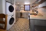 The first floor of this property has 2 bedrooms, one with a queen bed and the other with two sets of twin bunks. They share a full bath just outside in the hall. Up one flight is the heart of the home with the living, kitchen, and dining. Warm up to the fire on a chilly night or sit out on the deck and look at the fantastic views of the slopes and Mt. Crested Butte. With the great location of this property hiking is just out your front door in the summer and skiing in the winter. The kitchen has a gas range for all the cooks in the family and the dining table looks out the living room windows to the spectacular views. There is a half bath on this level as well and a full size stackable washer and dryer.