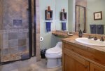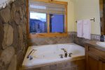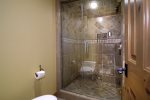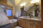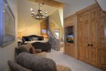 The top floor is dedicated to the master suite and definitely doesn't disappoint. There is a large sitting area with flat panel TV and sumptuous king bed with luxury linens. The master bath has an oversized tub, steam shower, and dual vanities. The entire space has vaulted ceilings with great log beams. Skiing out the back door in the winter, hiking in the summer, steps from great festivals and concerts year around and the best seat on the mountain for fireworks! Add it all up and it's hard to beat Silver Ridge 7!