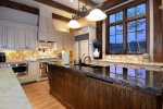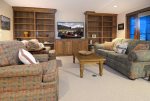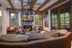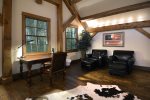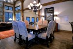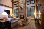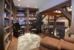 Step outside onto the covered patio off the main living area to soak in the fresh mountain air, or unwind in front of the outdoor fireplace while enjoying our cool Colorado evenings. The property also features a fantastic family room downstairs with comfy seating to take in an evening movie, a great game area for puzzles or a game of cards, and an oversized garage to store skis, gear, or just park your car to make your adventures hassle-free. If you need to escape and perhaps do a little work there is a beautiful library on the second floor with leather reading chairs and a desk for catching up with the real world.