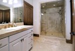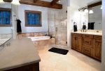 Each of the five bedrooms is a private oasis designed for maximum comfort and indulgence. The master suite boasts a plush king-sized bed, a cozy seating area, and a luxurious en-suite bathroom with a deep soaking tub and a rain shower, all nestled within views of the surrounding aspen forest. Three of the guest suites have king beds and the fourth has a queen bed. Two of the guest bedrooms with king beds have en-suite baths, and the remaining two guest suites share a jack and jill bath.