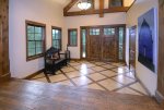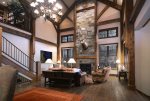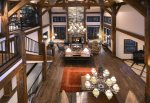 Upon arrival, you'll be greeted by the grandeur of nature and the warmth of sophisticated design. The expansive open-plan living area features floor-to-ceiling windows that frame breathtaking views and bathe the space in natural light. Elegant furnishings, a striking stone fireplace, and high-end finishes create an inviting atmosphere where you can relax in style. The two story space created with giant timber beams gives one the feeling of a mountain castle!