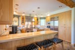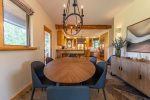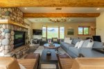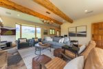 Inside, you’ll find a chef’s dream kitchen with high-end commercial-grade appliances such as Wolf and Sub-Zero, perfect for preparing gourmet meals after a day on the slopes or trails. The open-concept living room boasts gorgeous furnishings, a stunning fireplace, and panoramic mountain views through the large picture windows, creating a cozy yet sophisticated atmosphere.