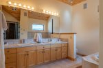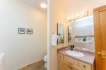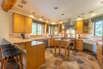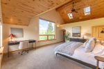 The home features three beautifully appointed bedrooms, each designed for comfort and relaxation, along with two and a half bathrooms. The master bedroom has vaulted ceilings and a sumptuous king bed as well as a private deck and picture windows to take in the incredible views along with an ensuite bath. The guest bedrooms share a full bath while one bedroom has a queen bed and the other has a set of bunks that are queen on the bottom, twin on the top, as well as a trundle bed. The heated garage and expansive driveway offer plenty of space for your vehicles and outdoor gear.