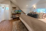 Master Suite Retreat – The private master bedroom is located on its own floor, featuring a spacious layout, a plush king bed, and an en-suite bath with a soaking tub and a separate shower for ultimate relaxation.