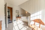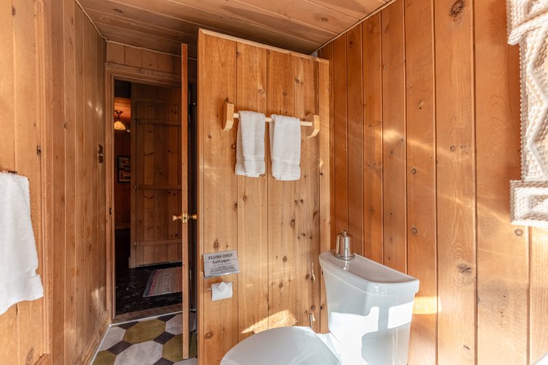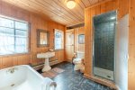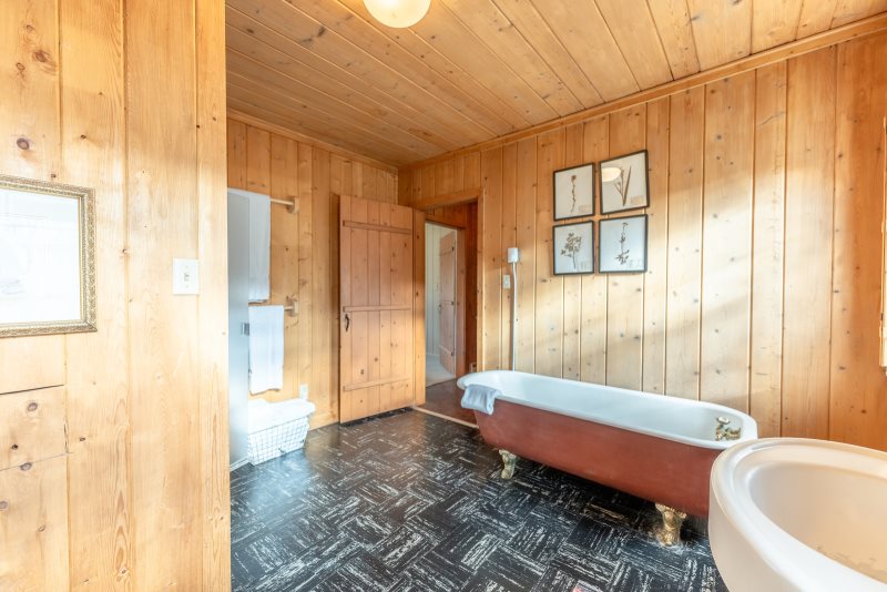 There are 5 comfy bedrooms, the master suite on the ground floor has a king bed along with a historic en-suite bath featuring a cast iron soaking tub and a separate shower. There is plenty of light from the abundance of windows and even two separate work spaces to catch up on email. The 4 guest bedrooms are all upstairs and consist of a king, a queen, and two double beds that all share two guest bathrooms with pedestal sinks and showers.