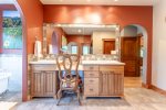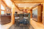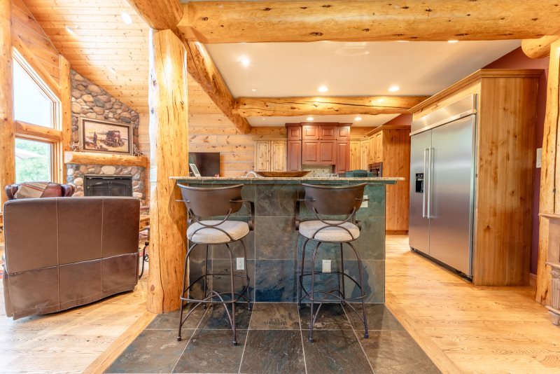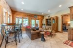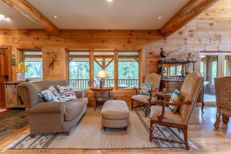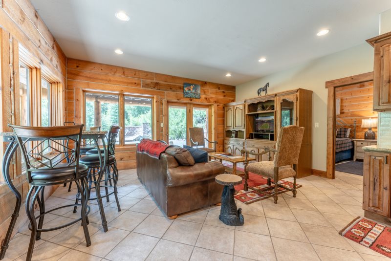 Enter your private driveway nestled amongst the giant pine trees and pull into the heated, and oversized 2 car garage with room for all of your toys. The main living level is elevated above the garage and takes in the fantastic views of the Whetstone mountains. The grand log architecture combine with a cowboy retreat the whole family will love! On the main level you will find a large living area with vaulted ceilings, fireplace, and multiple areas to relax. The open floor plan to the kitchen means that all the chefs in the family are still part of the fun. The kitchen is fully stocked with everything needed to prepare that perfect meal and equipped with high end commercial appliances. Need a coffee in the morning then fire up the Jura espresso steam wand machine or use the regular coffee maker. There are cast iron skillets for searing the perfect steak or use the gas grill on the grilling porch to create that perfect dinner. The dining table has room for everyone and takes in the fabulous views through the picture windows.