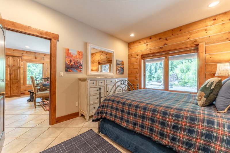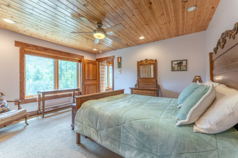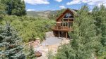 Downstairs on the garage level there is 4th bedroom with queen bed, living area with pull out sleeper sofa, full kitchen and access to the outside patios. The sauna is also on this level to soothe those tired muscles after a long day of skiing, hiking, or managing a fly rod. Speaking of fishing, just step outside to utilize what may be the best part of this wonderful home, the outdoor spaces! The covered porches that wrap around the home have a comfy sitting area with gas fire pit, a covered and enclosed grilling area, and flagstone patios leading to an outdoor fire pit with views of the Slate River below. Just a short walk down the flagstone staircase to the river and you will find another world surrounded by beautiful trees and the sound of a Colorado river running with trout! This property has 1/2 mile of private river access and sitting in the Adirondack chairs by the river might just be the best place anywhere for that first cup of coffee or that last glass of wine!